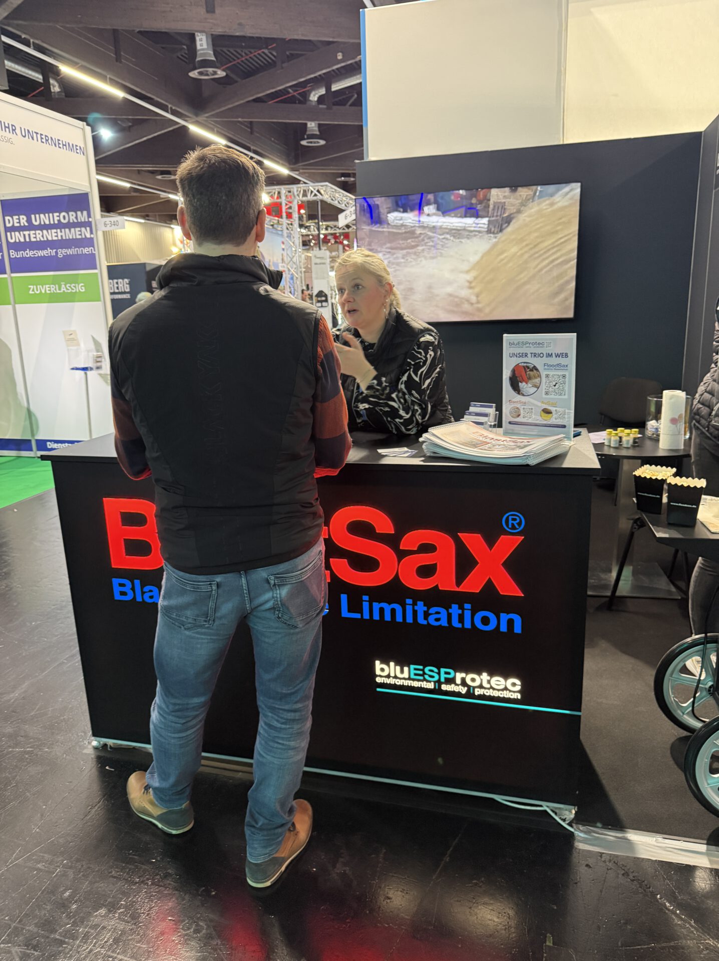 Auch FloodSax präsentierte sich vom 23. bis 25. Februar 2026 auf der Enforce Tac in Nürnberg als flexible Lösung im Bereich mobiler Hochwasserschutz und Wasserschadensbegrenzung.